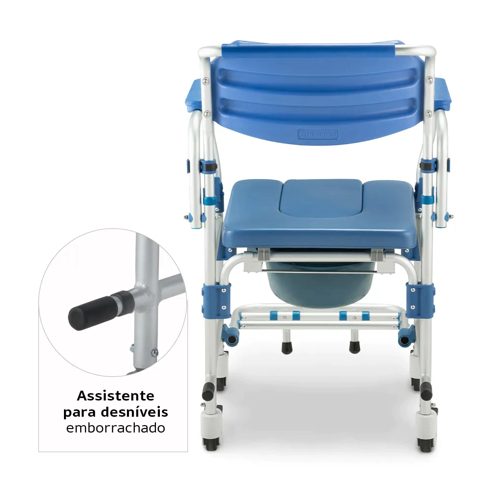 A Cadeira de Banho Higiênica de Alumínio D60 Dellamed é um produto multifuncional desenvolvido para atender às necessidades de adultos e idosos que possuem restrições de mobilidade. A D60 pode ser usada sobre o vaso sanitário, no banho e para locomoção interna na casa. Além disso, possui assento frontal removível que facilita a higienização do usuário sentado. A cadeira possui 4 rodas com travas que facilitam o transporte interno mesmo em locais com espaços reduzidos.